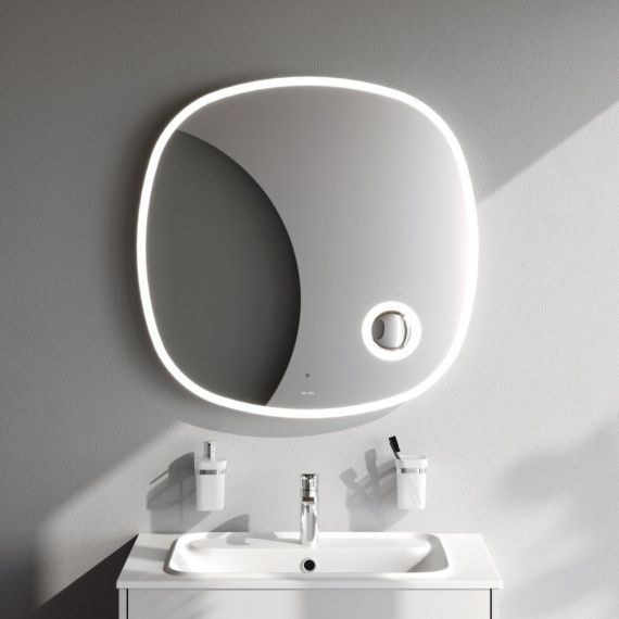 В качестве элемента LED-подсветки используется светодиодная лента, которая создает мягкое и равномерное свечение по контуру всего зеркала. Управление подсветкой осуществляется при помощи бесконтактного сенсора нового поколения. Он позволяет управлять включением/выключением и яркостью LED-подсветки без касания зеркального полотна. Зеркало дольше остается чистым.