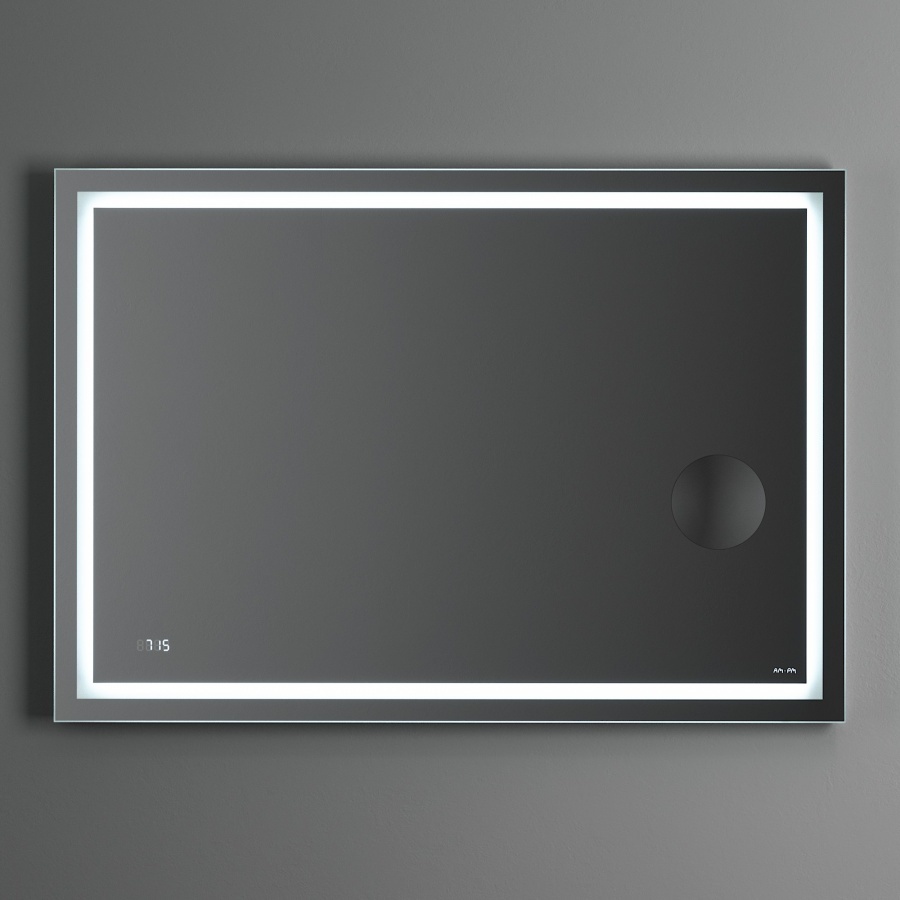 Ультрамодный лаконичный дизайн зеркал Gem от собственной студии дизайна AM.PM Design подойдет к интерьеру любой ванной комнаты. Премиальный функционал в коллекции доступного ценового сегмента: встроенное косметическое зеркало увеличивающее изображение и часы прямо под стеклом - всегда на виду. Усиленная LED-подсветка по периметру обеспечивает отличное рассеянное освещение и отсутствие теней. Срок службы светодиодов составляет более 30 000 часов. Скрытый механический выключатель сохраняет эстетическую целостность дизайна зеркала а также гарантирует отсутствие отпечатков пальцев на зеркальном полотне. Зеркальное полотно премиального качества производства Бельгии. Гарантия 3 года.
