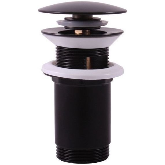 Донный клапан для раковины с переливом click/clack 5/4", с большой заглушкой и регулируемой высотой, материал - латунь, цвет - черный.