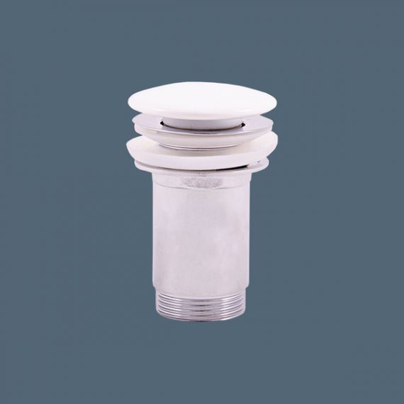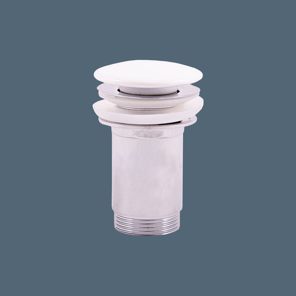 Донный клапан для раковины с переливом click/clack 5/4", с большой заглушкой и регулируемой высотой, материал - латунь, цвет - белый.