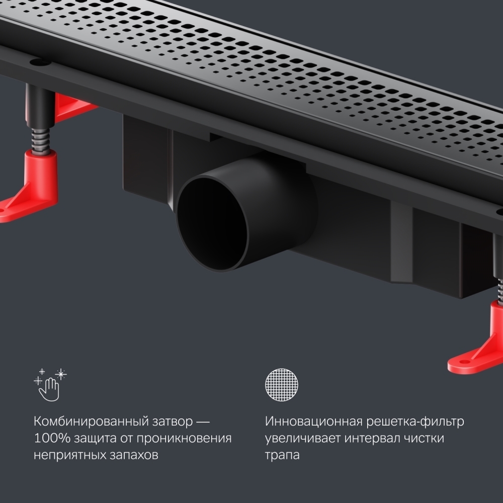 Трап AM.PM 50 см W02SC-P11-050-01BM с решеткой, материал нержавеющая сталь/пластик, цвет чёрный.