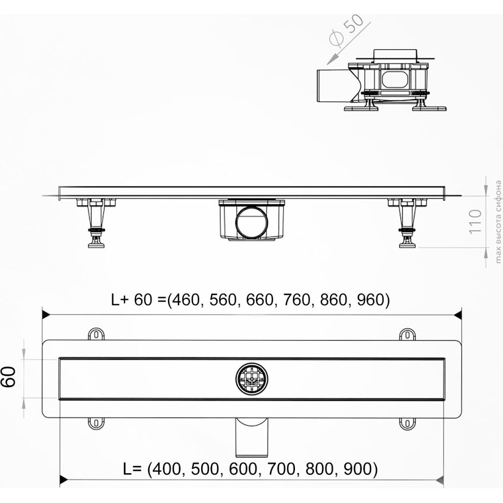 Трап Azario AZPP01-50 Stick с решеткой из нержавеющей стали, цвет нержавеющая сталь.