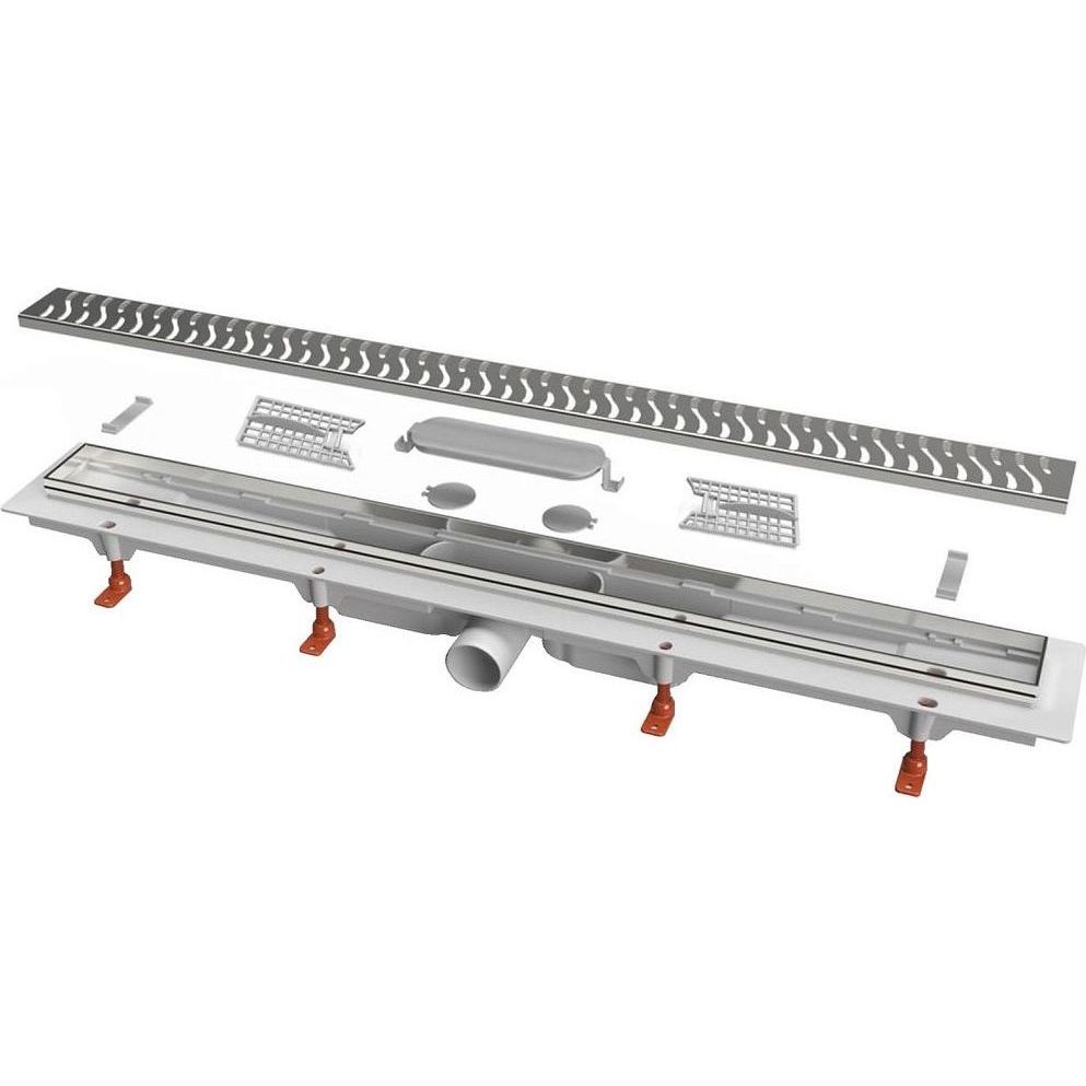 Нижняя часть и рамка желоба изготовлена из PP и PS, решетка изготовлена из нержавеющей стали DIN 1.4301, с возможностью нагрузки K3 (до 300 кг).