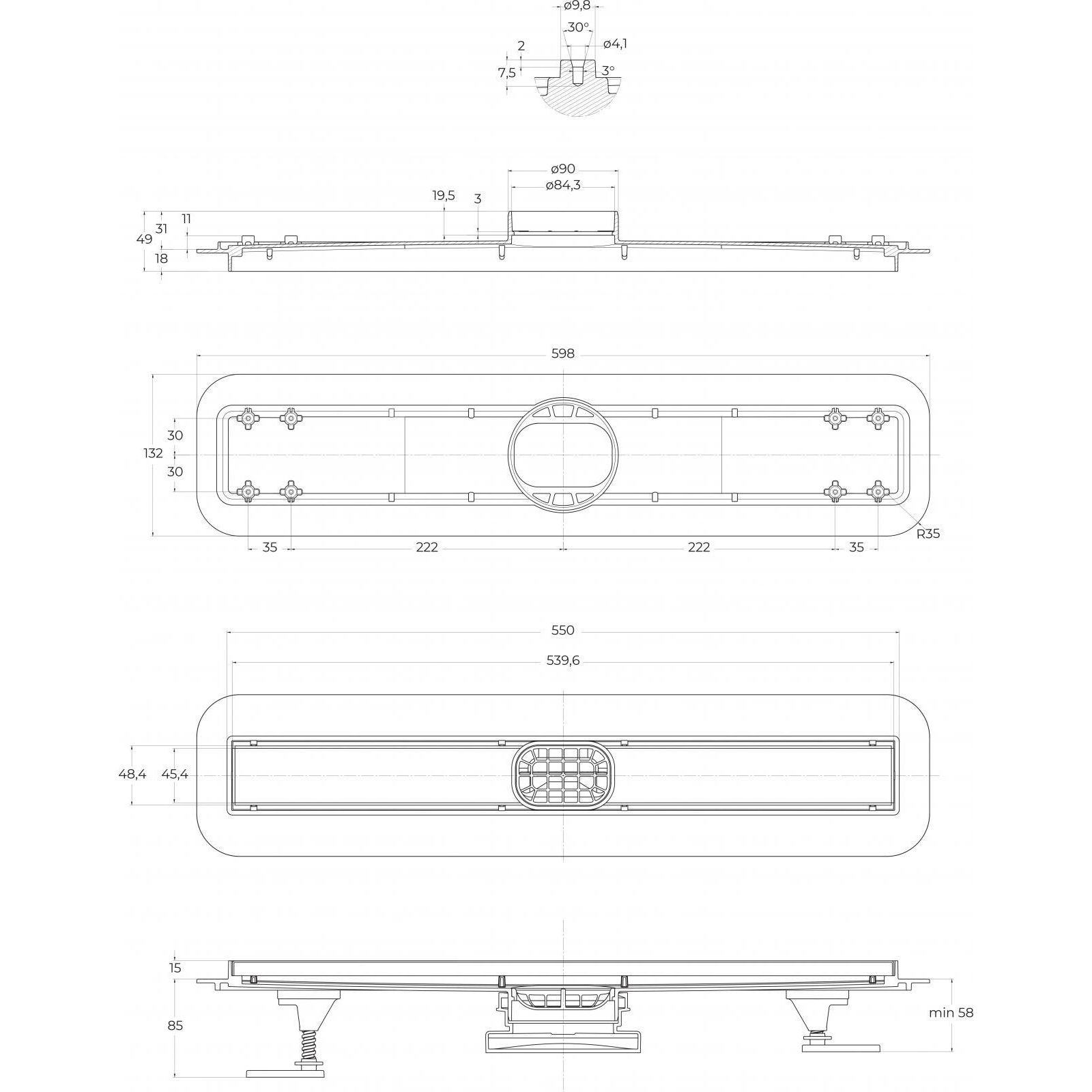 Трап Belbagno Luce 60 см BB-LD-LUCE-60-NERO, черный матовый (под плитку)