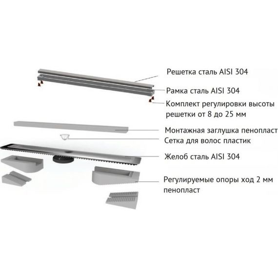 Регулировка рамки и решетки по высоте от 8 до 25мм