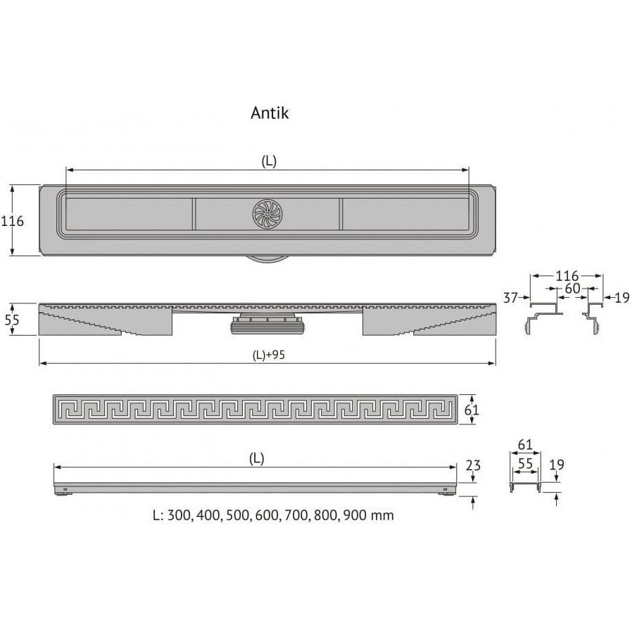 Трап Berges Wasserhaus B1 Antik 60 см 090124, нержавеющая сталь, хром матовый