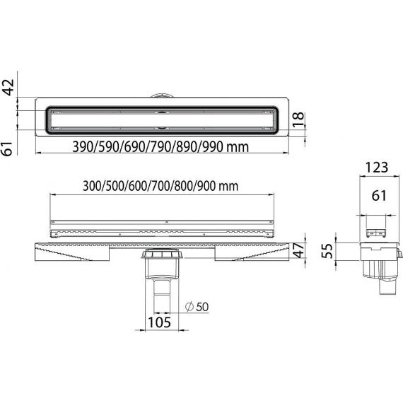 Двусторонняя установка решетки: металл и вклейка плитки с регулировкой по толщине плитки от 8 до 25мм