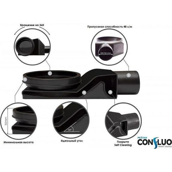 Трап Pestan (BETTOSERB) Confluo Frameless Line Black Glass 75 см 13701205, хром/черный