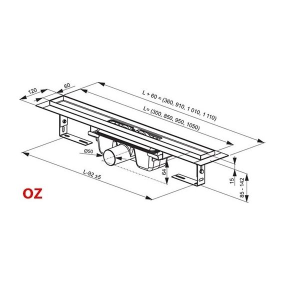 монтажная высота душевого канала 100 мм.