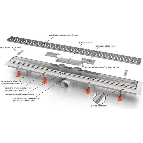 Трап Veconi Line Black 85 см с решеткой из нержавеющей стали, цвет черный матовый.