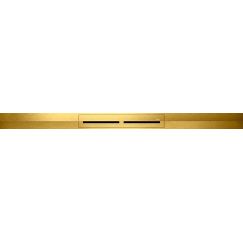 Трап Berges Wasserhaus Super Slim 800 мм с порогами для решетки, решетка в комплекте, цвет - золото глянец. Для заказа доступен трап с вертикальным выпуском.