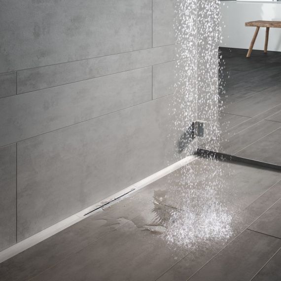 Душевой профиль, который можно обрезать по длине, выполненный из нержавеющей стали, с уклоном к центру для улучшения слива воды и самоочищения, материал 1.4301 (304)