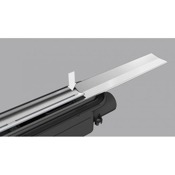 Душевой профиль, который можно обрезать по длине, выполненный из нержавеющей стали, с уклоном к центру для улучшения слива воды и самоочищения, материал 1.4301 (304)