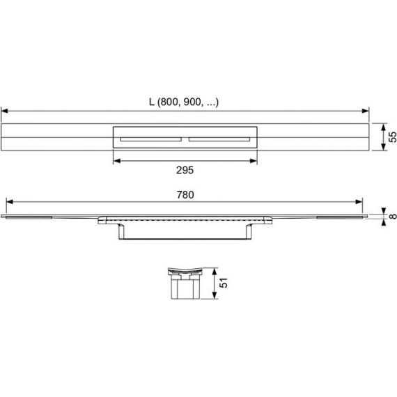 Душевой профиль может быть укорочен до минимальной длины 500 мм