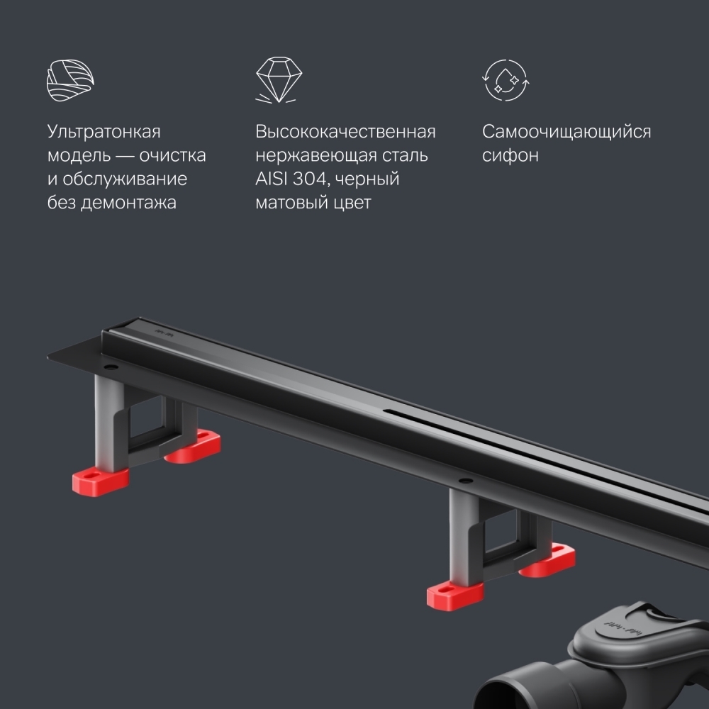 Трап AM.PM 100 см W01SC-S11-100-05BM с решеткой, материал нержавеющая сталь, цвет чёрный.