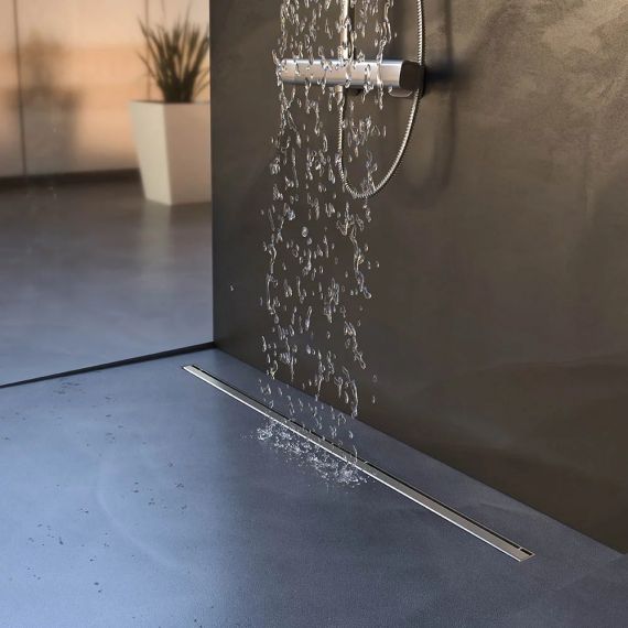 В комплект входит самоклеящаяся гидроизоляционная пленка, сетка для сбора волос, комплект креплений, пластиковый ключ для снятия нержавеющей решетки и инструкция по установке.