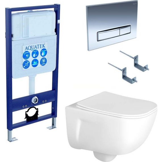 Инсталляция Aquatek Set Дива INS-0000012 с подвесным безободковым унитазом Aquatek AQ2012-00, сиденье с тонкой крышкой микролифт. Крепеж и панель смыва в комплекте.