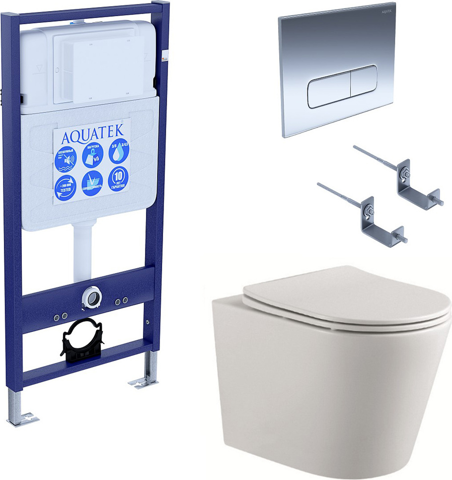 Инсталляция Aquatek Standart 50 INS-0000012 с подвесным унитазом Aquatek Вега AQ1904-00 (кнопка KDI-0000016 хром)