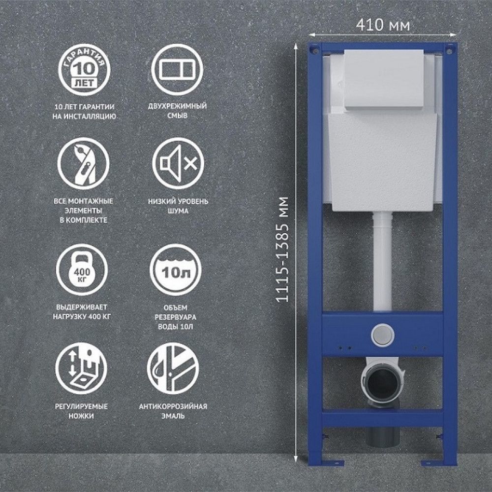 Монтажный кнопочный узел, полный комплект патрубков, лекала для монтажа отверстий; унитаз ALBIT S: Безободковый смыв, сидение дюропласт Top Slim SO: микролифт, быстросъемное. Все крепежи для установки в комплекте. Гарантия 10 лет.