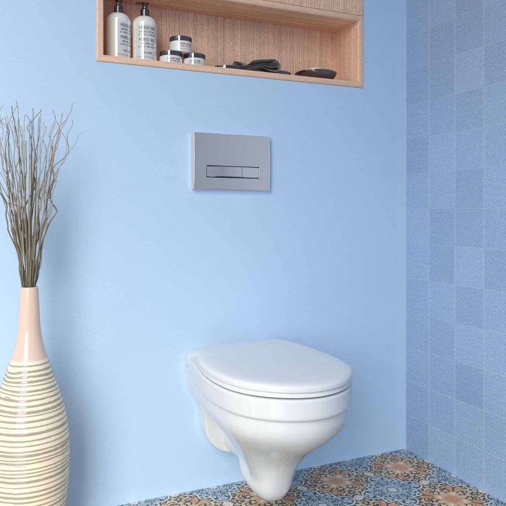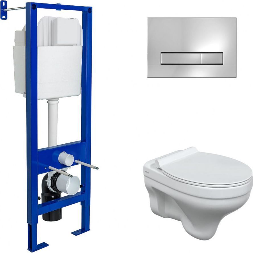 Полный Комплект ATOM Line для монтажа подвесного унитаза: инсталляция, cтальная рама с антикоррозийным покрытием, кнопка хром глянец, унитаз ALBIT S, сидение дюропласт Top Slim SO.