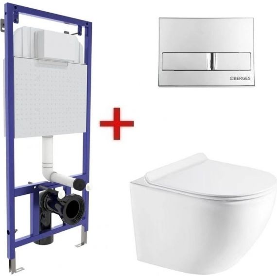 Инсталляция Berges Wasserhaus Novum L3 040213 с подвесным безободковым унитазом Azario Gloria AZ-2003 (кнопка хром глянец)
