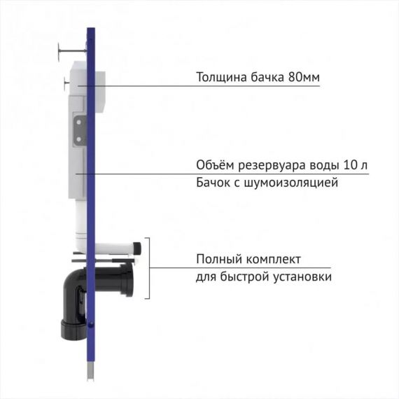 Толщина бачка 80 мм для установки в малогабаритных помещениях