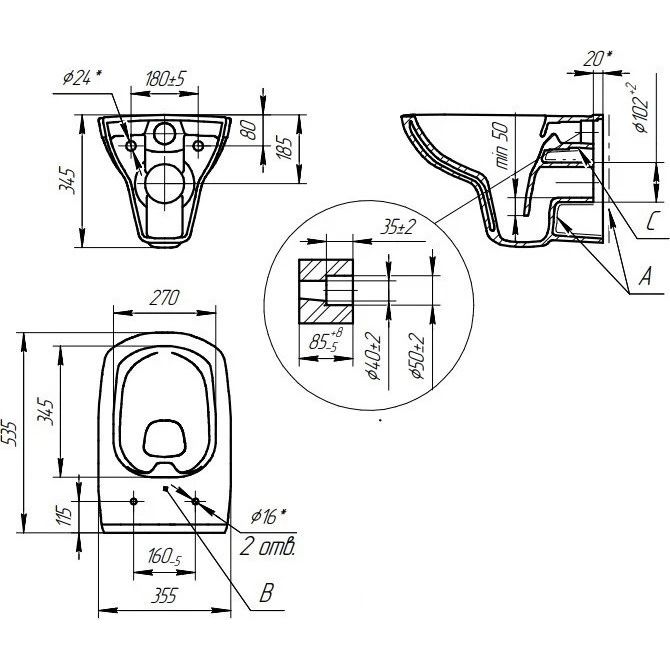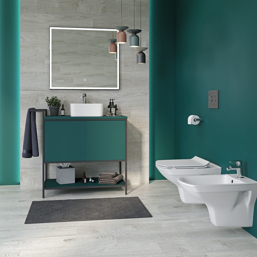 Инсталляция Vector с подвесным безободковым унитазом Carina Xl Co Dpl Eo Slim с ультратонким антибактериальным сиденьем из дюропласта с функцией плавного закрывания и легкосъемом, и кнопкой смыва Corner цвета хром глянцевый.