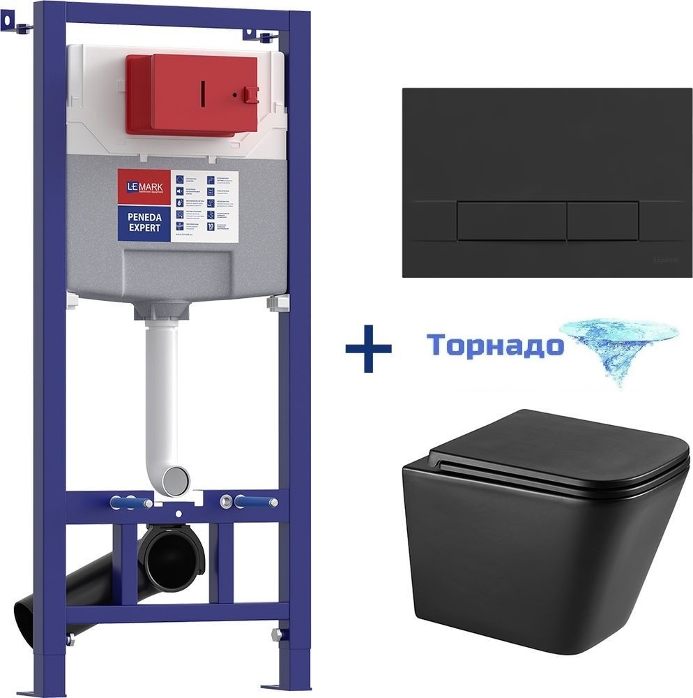 Инсталляция Lemark Peneda Expert с подвесным безободковым унитазом Florex 100122236, кнопка чёрная матовая (Система смыва торнадо)