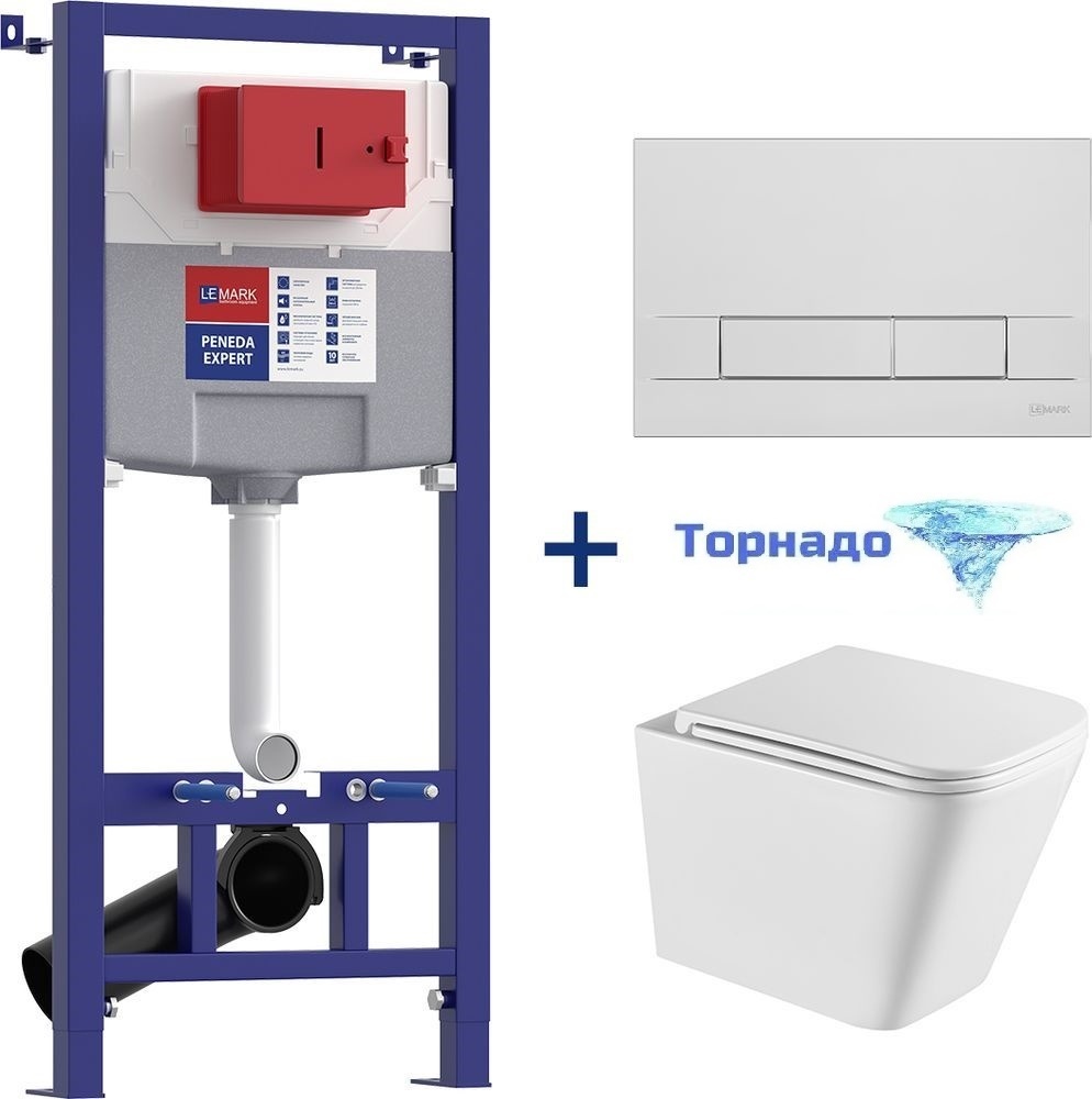Инсталляция Lemark Peneda Expert с подвесным безободковым унитазом Florex Торнадо 100121423, кнопка хром глянцевая (Система смыва торнадо)