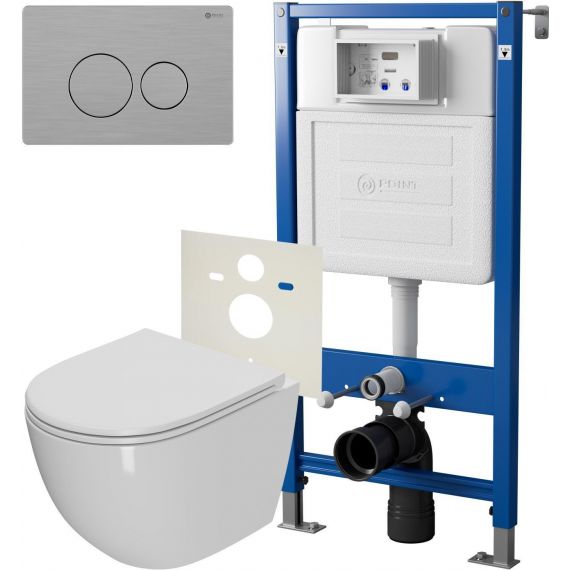 Инсталляция Point Элемент PN45120 с подвесным безободковым унитазом Афина PN41041 (кнопка PN44061SB сталь брашированная)