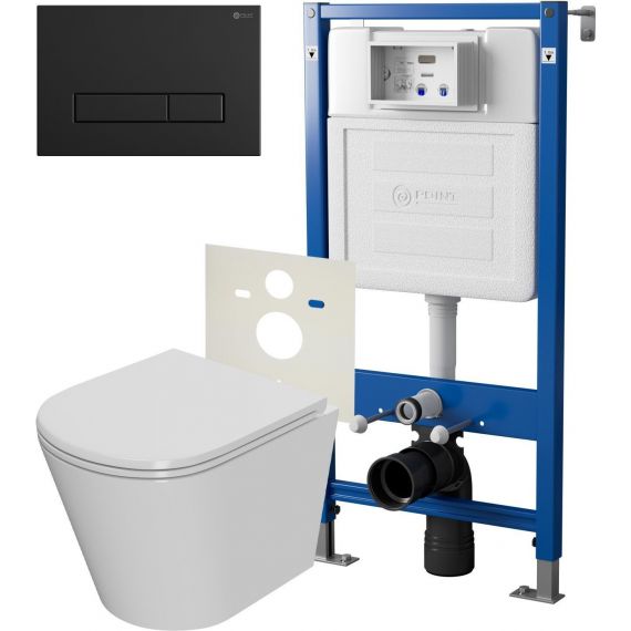 Инсталляция Point Элемент PN45120 с подвесным безободковым унитазом Виктория PN41061 (кнопка PN44831BM чёрная матовая)
