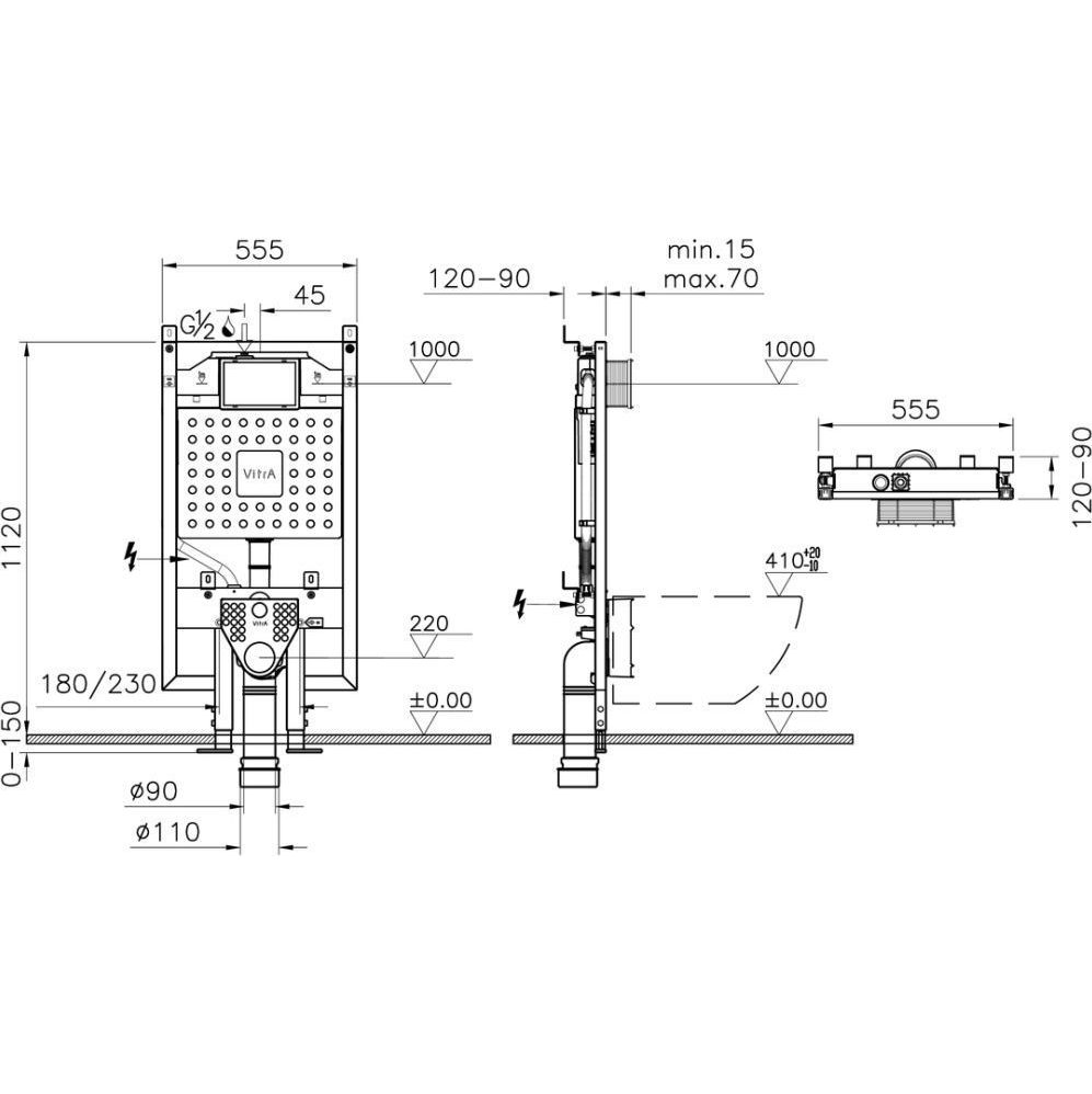 Инсталляция с подвесным безободковым унитазом Vitra Integra Round 9856B003-7205