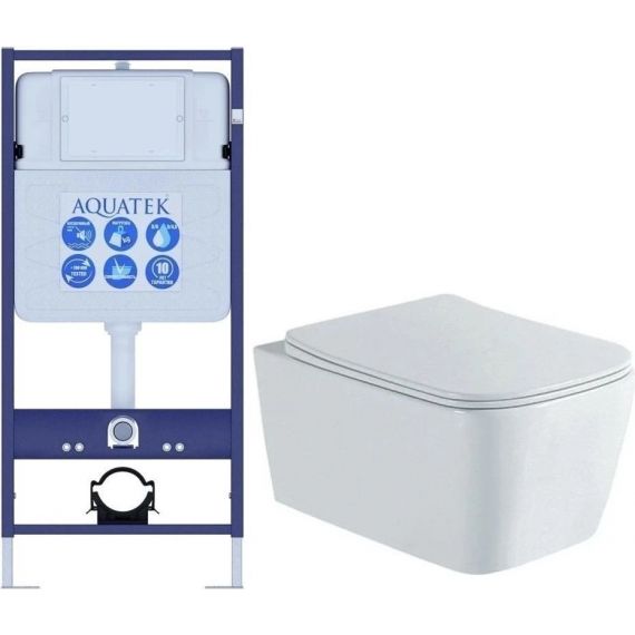 Инсталляция с подвесным унитазом комплект: Aquatek Set INS-0000012 с подвесным безободковым унитазом Либра AQ1148N-00 сиденье микролифт. Кнопка смыва и крепление приобретается отдельно.