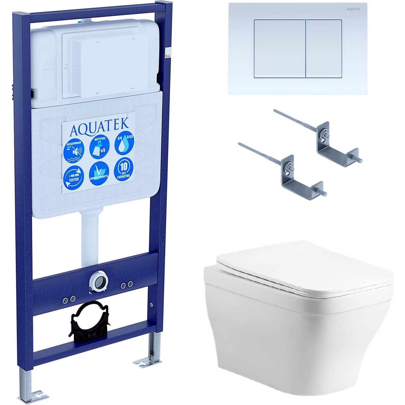 Инсталляция с подвесным унитазом комплект: Aquatek Set INS-0000012 с подвесным безободковым унитазом Амадео AQ1180-00 сиденье микролифт, крепление, кнопка смыва белая