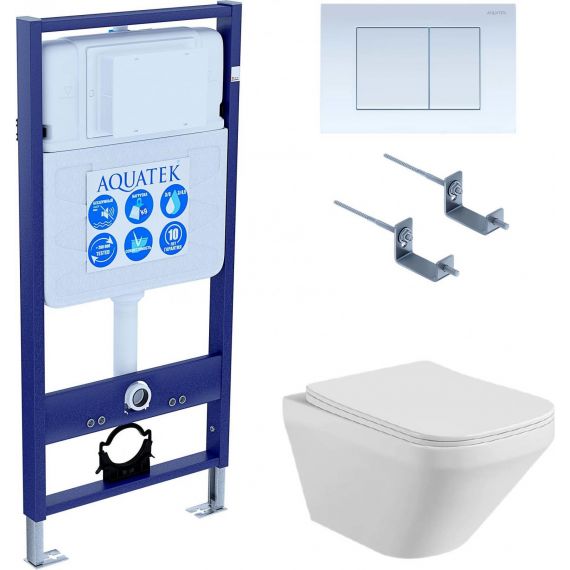 Инсталляция с подвесным унитазом комплект: Aquatek Set INS-0000012 с подвесным безободковым унитазом Лира AQ1155-00 сиденье микролифт, крепление, кнопка смыва белая.