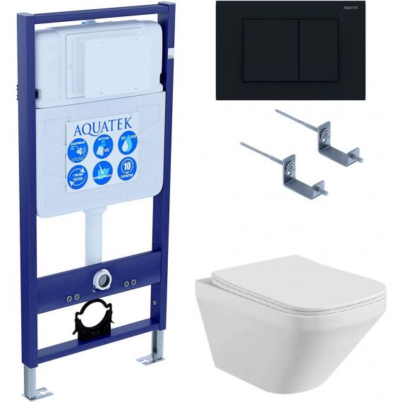 Инсталляция с подвесным унитазом комплект: Aquatek Set INS-0000012 с подвесным безободковым унитазом Лира AQ1155-00 сиденье микролифт, крепление, кнопка смыва чёрная матовая