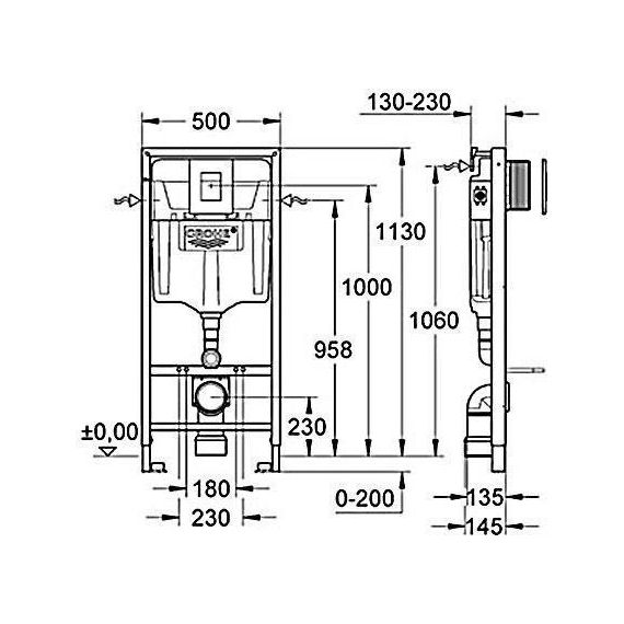Инсталляция с подвесным унитазом комплект: Grohe Rapid SL 38772001+38732GN0 с подвесным безободковым унитазом Azario Gloria AZ-2003 сиденье микролифт, крепление, кнопка смыва золото матовое.
