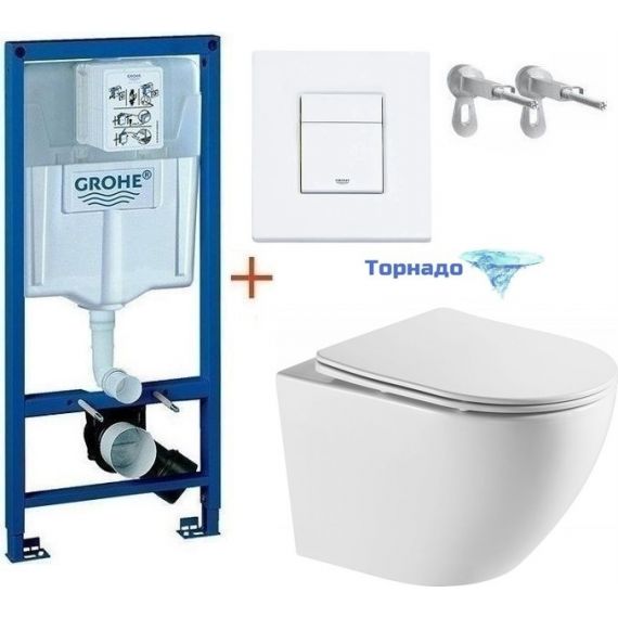 Инсталляция с подвесным унитазом комплект: Grohe Rapid SL 38772001+38732WM0 с подвесным безободковым унитазом Azario Grado AZ-0046-UQ сиденье микролифт, крепление, кнопка смыва белый матовый