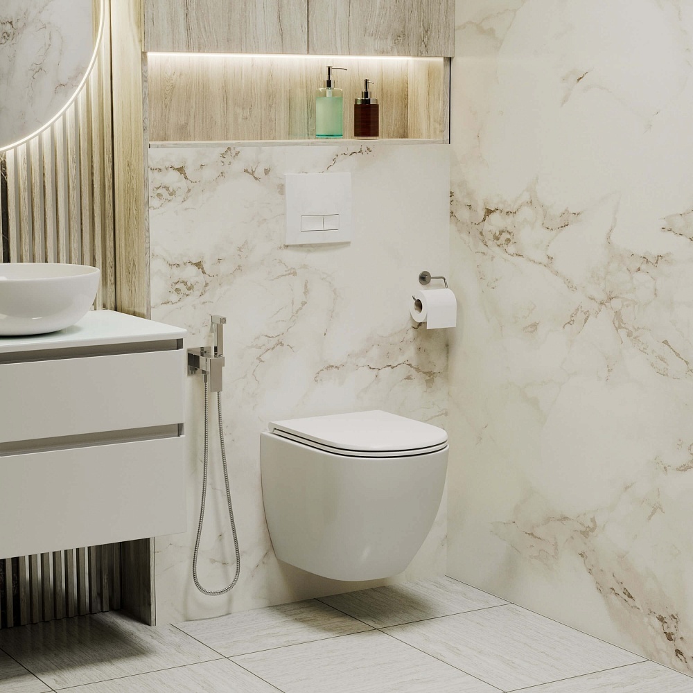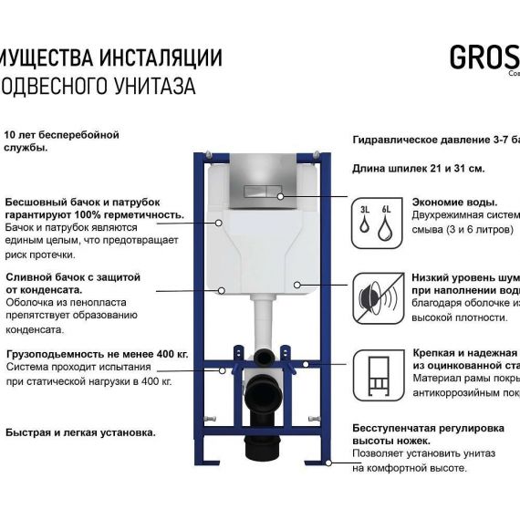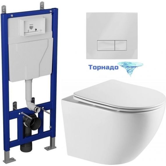 Инсталляция с подвесным унитазом комплект: Grossman 900.T1.01.000 с подвесным безободковым унитазом Azario Grado AZ-0046-UQ сиденье микролифт, крепление, кнопка смыва белый глянцевый