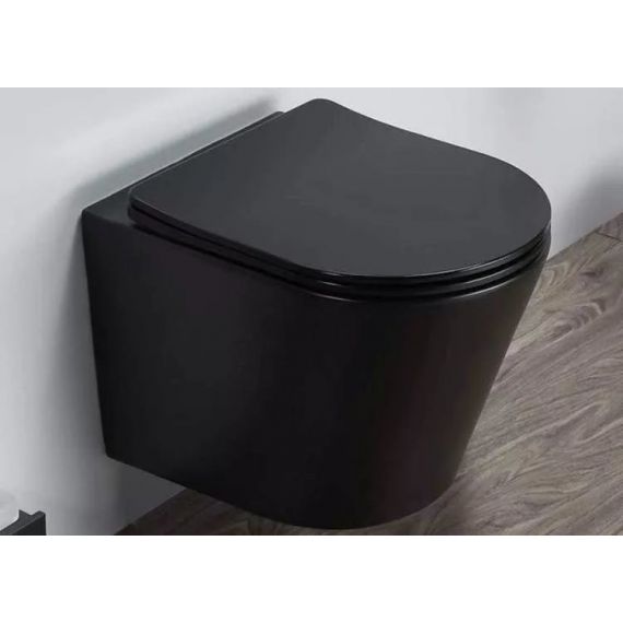Унитаз подвесной CeramaLux Rimless B2330-1MB с крышкой микролифт, черный матовый