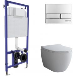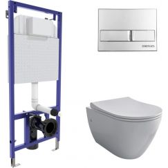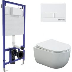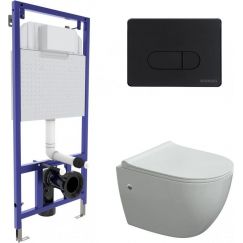 Комплект: инсталляция, кнопка смыва, подвесной безободковый унитаз Strati, быстросъемное сиденье с крышкой микролифт, крепление.