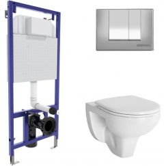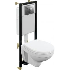 Комплект: инсталляция Cersanit Black IN-BLACK-Cg-w с кнопкой Leon, хром глянцевый + подвесной унитаз Kale Basics, сиденье с крышкой микролифт.