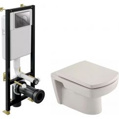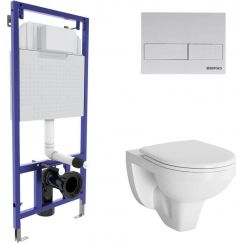 Комплект: инсталляция, кнопка смыва, подвесной унитаз Gamma, быстросъемное сиденье с крышкой микролифт, крепление.