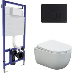 Комплект: инсталляция Cersanit Black IN-BLACK-Cg-w с кнопкой Leon, хром глянцевый + подвесной безободковый унитаз Azario Pavia 2142, сиденье с крышкой микролифт.
