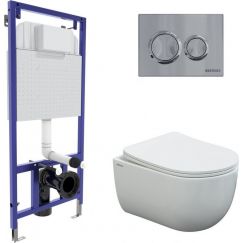 Комплект: инсталляция, кнопка смыва, подвесной безободковый унитаз Mascon, быстросъемное сиденье с крышкой микролифт, крепление.