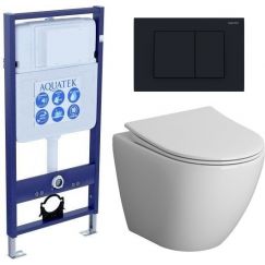 Инсталляция с подвесным унитазом комплект: Aquatek Standart 50 INS-0000012 с подвесным безободковым унитазом Niagara Vista NG-9301 сиденье микролифт, кнопка смыва чёрный матовый.