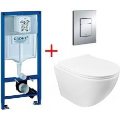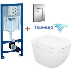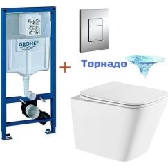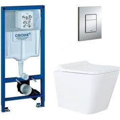Инсталляция с подвесным унитазом комплект: Grohe Rapid SL 38772001 подвесным безободковым унитазом Azario Grado AZ-0046-UQ, кнопка хром, крепление, сиденье с крышкой микролифт.