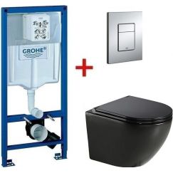 Инсталляция с подвесным унитазом комплект: Grohe Rapid SL 38772001 подвесным безободковым унитазом Azario Teramo AZ-0052-UQ1MB, кнопка хром, крепление, сиденье с крышкой микролифт.