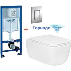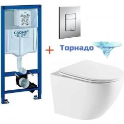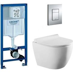 Комплект: инсталляция Grohe Rapid SL 38772001, кнопка смыва, безободковый унитаз Azario Teramo 0053, сиденье с крышкой микролифт, крепление.
