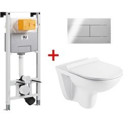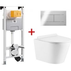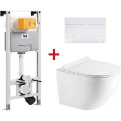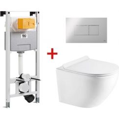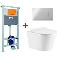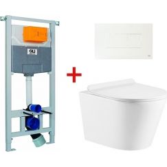 Инсталляция Oli 120 Eco (механическая) 879236 с подвесным безободковым унитазом Azario Gloria AZ-2003, сиденье с тонкой крышкой микролифт, крепление. Панель смыва приобретается отдельно.